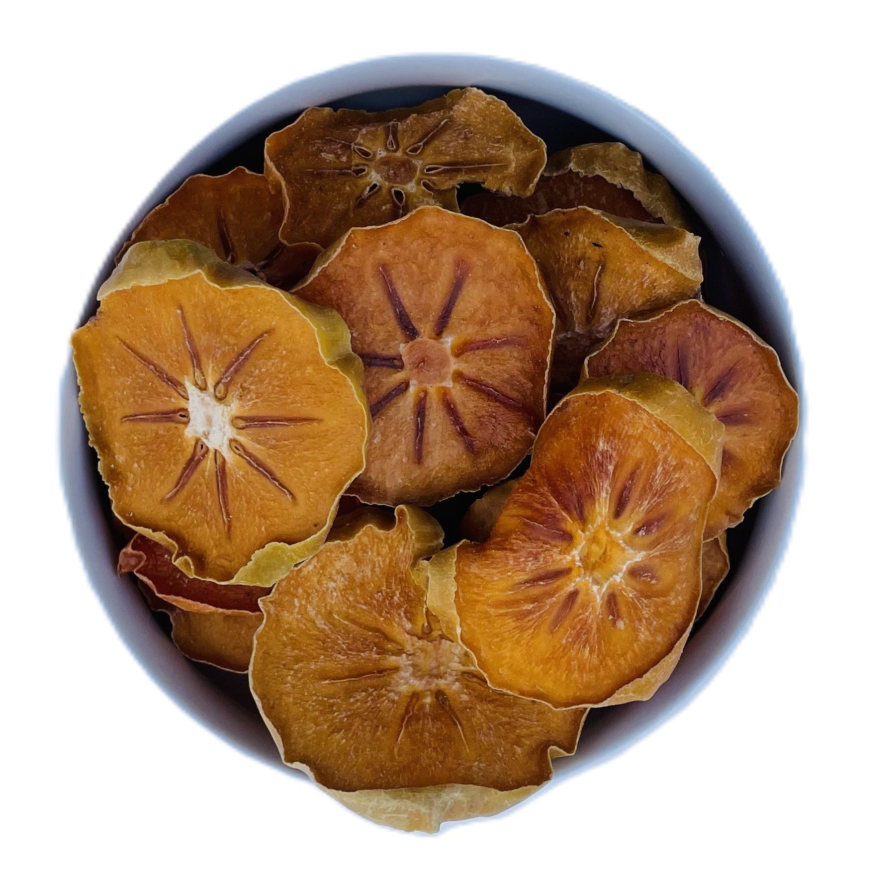 Tynde skiver af kakifrugter fra Nengarhar, Afghanistan. De er saftige og tilbyder en let sødme lagdelt med noter af karamel og antydninger af varme krydderier. Hver bid er lys og trøstende, med de fyldige smagsnuancer, der hænger ved længe efter.