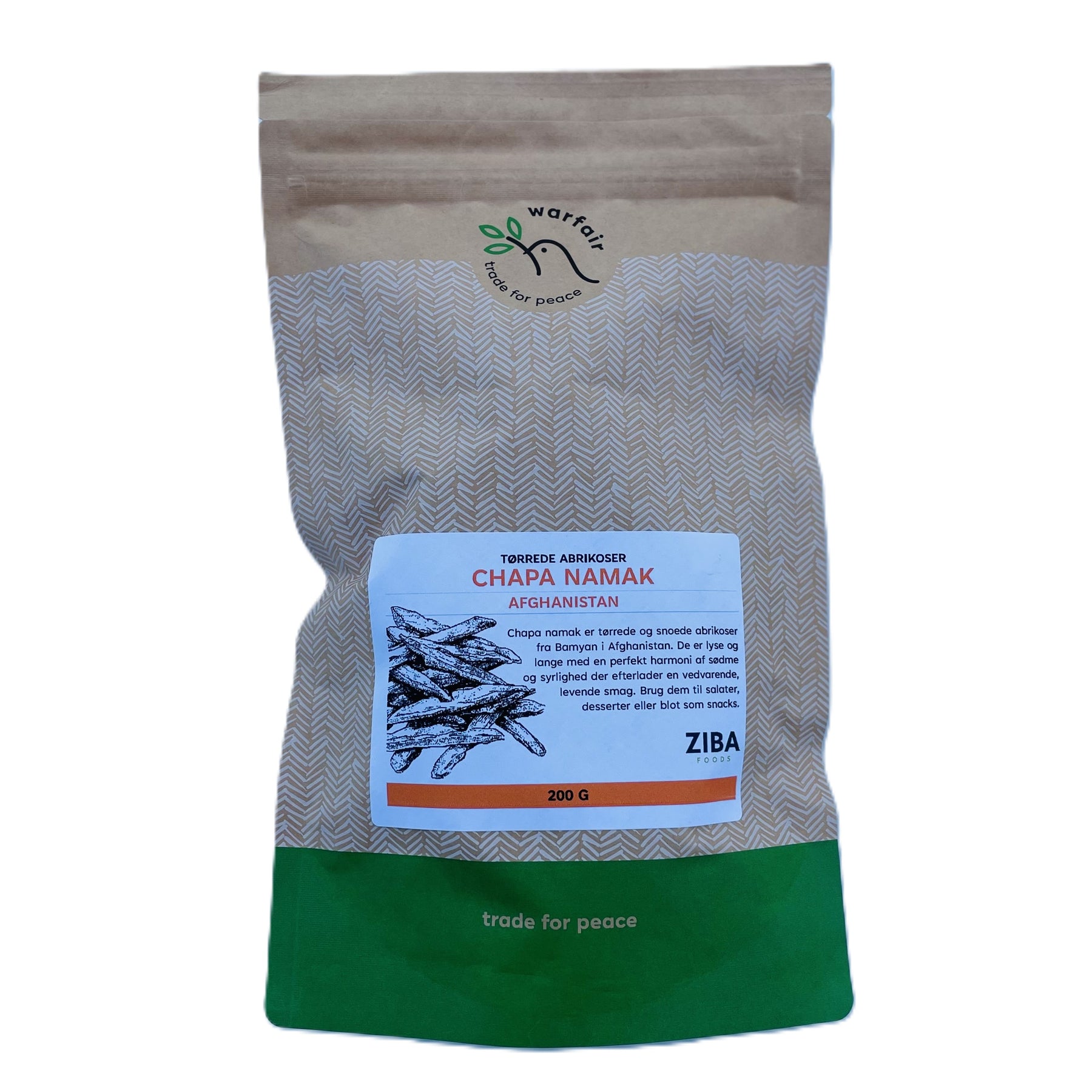 Chapa namak er det særlig afghanske navn for tørrede og snoede abrikoser. De stammer fra Bamyan i Afghanistan og er lyse og syrlige og afslører den dristige sødme fra tørrede afghanske abrikoser.  Deres snoede, faste tekstur giver dem en delikat, velsmagende balance. Hver bid afslører en perfekt harmoni af sødme og syrlighed og efterlader en vedvarende, levende smag.